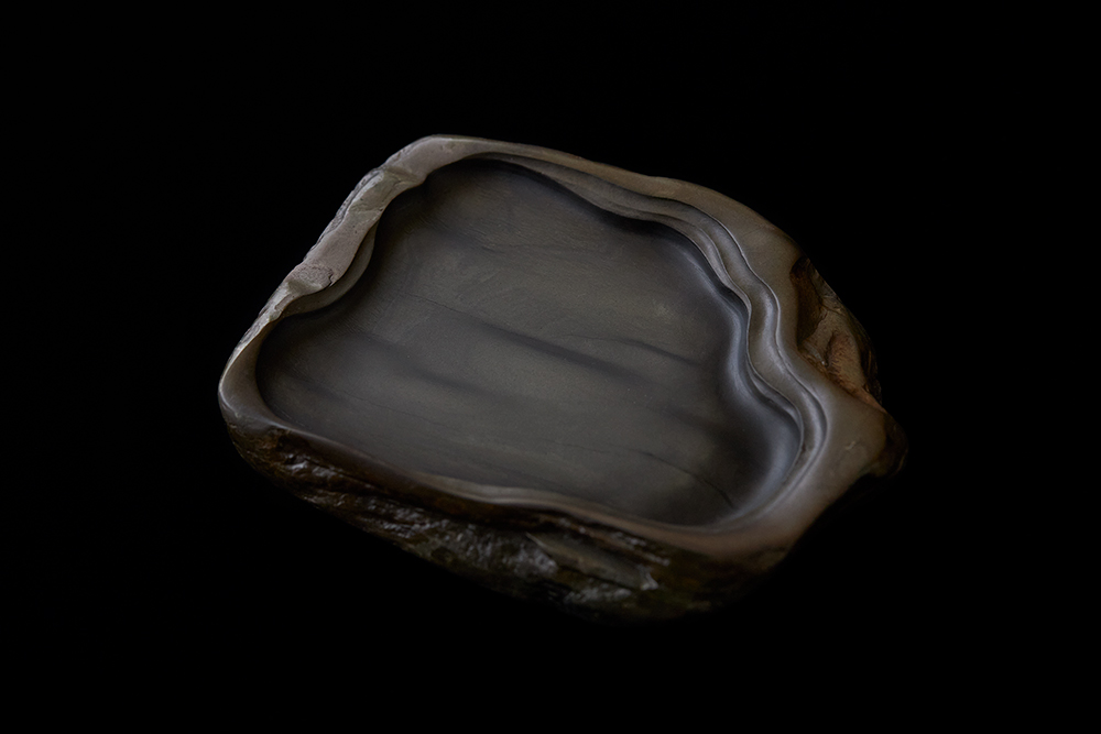 すでに完成された自然美を備えていたが、最小限の手工に限定し硯化を試みた。