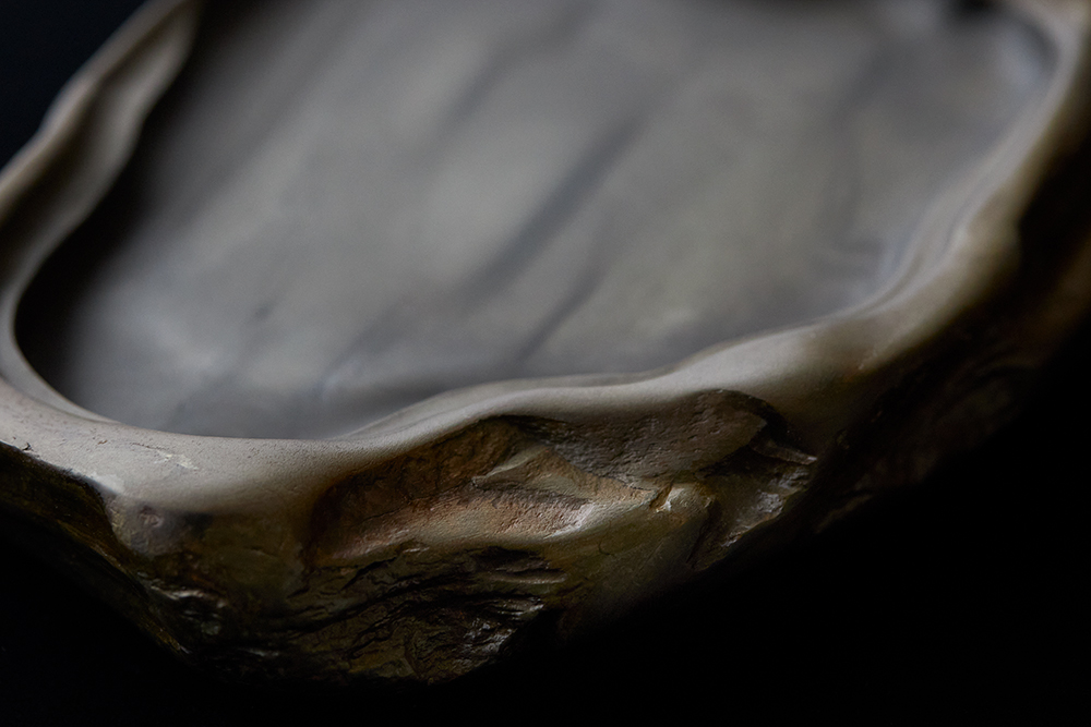 縁および背面に残した自然景観と硯造形の両立を模索した。