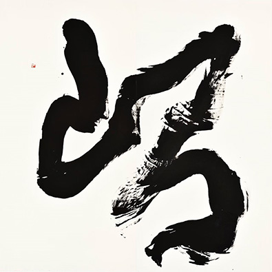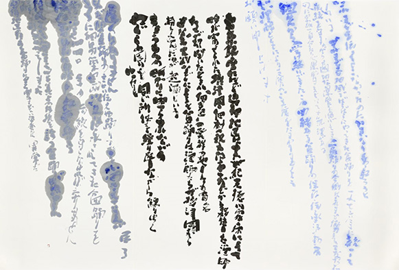 墨を磨ること。墨を筆に含ませ、紙の内部に行き渡らせて作品を生んでいくこと。
