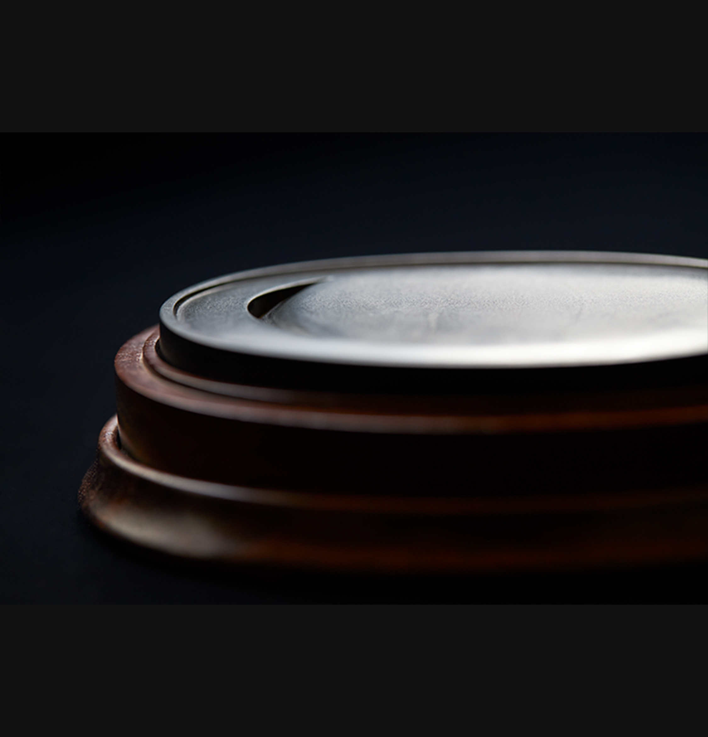 そして1ミリの覆輪、ミニマムな月型墨池を設置し、造形にエッジを加えることで硯相にメリハリを付けた。
